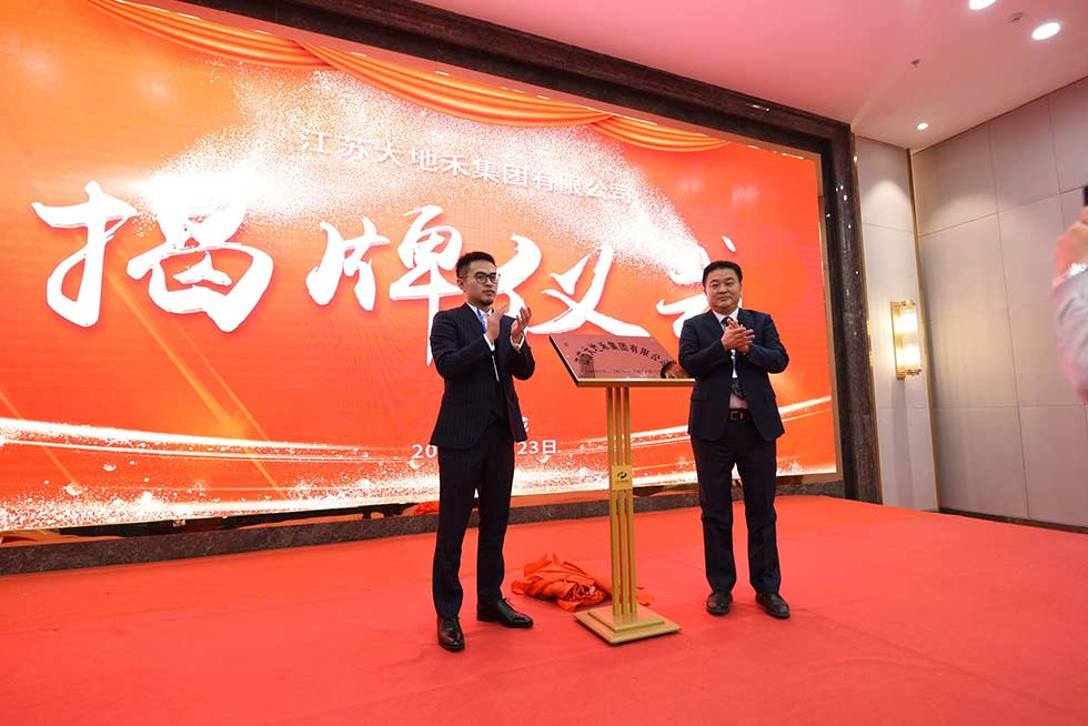 會上,集團董事長朱加軍、集團副總經理朱冠宇共同為江蘇大地禾集團有限公司揭牌。