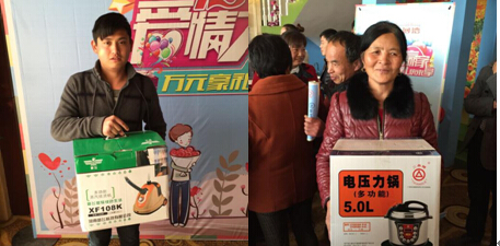 情侶衫、情侶卡包、相框墻、電磁爐、踏步機、掛燙機通通大派送! 現場嘉賓們積極參與,踴躍猜價,并有幸運客戶連續中獎多次,現場氣氛歡樂,大家在輕松自由的環境中贏得了自己心儀的禮品。小孩大人齊上陣,情侶父母都使勁,超有愛的一幕有木有!